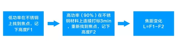 缺點(diǎn):由于焦深的存在,高度F1與F2存在一定的誤差,因此焦距變化量L不太準(zhǔn)確,可以通過(guò)多次測(cè)試減小誤差;高功率下打標(biāo),光太強(qiáng),不易重新找到焦點(diǎn)位置