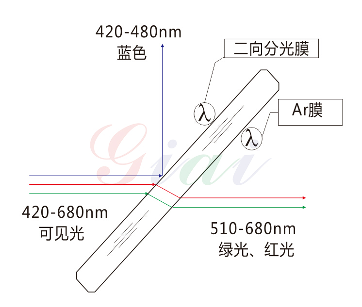 | 型號(hào) | 應(yīng)用 | 中心波長(zhǎng) | 投射波長(zhǎng) | 反射波長(zhǎng) | AR膜波長(zhǎng) |