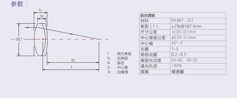 膠合透鏡也叫消色差透鏡,是由兩個單片鏡片通過膠合而成,在復(fù)色(白光)成像的性能比單透鏡性能提高了許多。消色差鏡片由兩片材料不同的鏡片膠合在一起,校正了玻璃的色散。消除了色差問題,消色差鏡片就在多色照明以及成像方面得到了廣泛的應(yīng)用,提高了成本效益。