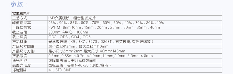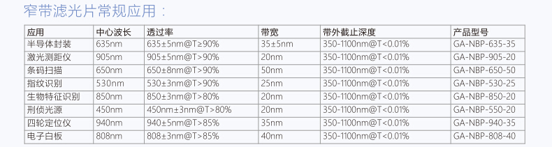 抑制光源、傳感器、自然光并分離出特定的單色光譜的光學(xué)鏡片。窄帶濾光片是相對截止干擾光和透過特定波長的濾光片,激埃特光電生產(chǎn)的窄帶濾光片優(yōu)點在于更注重客戶的應(yīng)用領(lǐng)域,定制最佳性價比的窄帶濾光片。